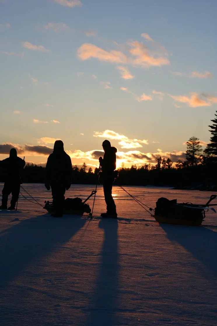 This last season I co-led our one month course for young adults 18-25, wanting a challenge, to learn how to be more self motivated and to find their path in life. The course was split into three parts. 6 days of skiing and learning winter camping, 12 days of dog sledding along the Canadian border, including a 36 hour solo time, where students collect fire wood, set up a shelter and make their dinner in their spot in solitude, and then a 6 day ski final where the group is moving independently from us instructors and we travel and camp separately.