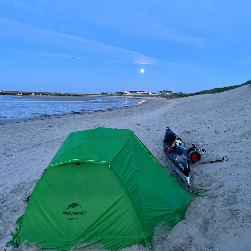 That’s when the wind picked up and I crossed around Rosslare harbor staring and the big Stena Line ship. Went around the corner and slogged into the wind for the last 7 miles of the day to Carne beach. Pulled up and knew it was a wash the next day so I texted people to see if they knew anyone in this area that I could stay with the next day. Wasn’t that windy so I set up my stuff after eating a whole pint of Greek yogurt which was nice to have fresh dairy. Thanks to Kevin who just released his book about his circumnavigation, he got me in touch with some lovely people.