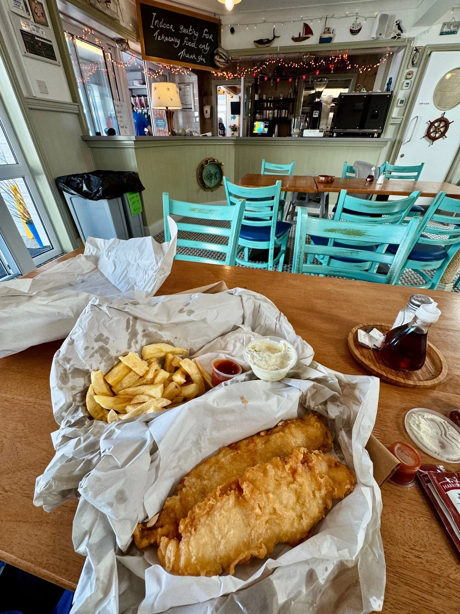 Actually I had complaints at first because I set off all fine and as I came around Carnsore point, the sea was very rolly. 2 meter swell but really far apart period wise but here is what I’m realizing about me in big swell. Nothing was breaking and it was fairly chill just being lifted and dropped gently, but the thing is, I get really sleepy when I’m in a car or bus or plane and I think it’s because of the soft motion that lulls me to sleep and I think that’s exactly what happens in seas like that too. I get really tired and sleepy and then I’m just fighting to stay away and drinking caffeine. Just a funny thing that I can put my finger on at last. After I woke up a bit, I just carried along the long sandy beach to Kilmore and didn’t even bother getting out of the boat until 13 miles later at the beach. Was a little bored so I called some friends and that made time pass really well. Listened to some music too because I’m staying inside tonight with a friend of a friend so I can charge my phone. Got a 99 and fish and chips at the pier, just divine. We went to the pub, first pint of Guiness on the trip was well enjoyed.