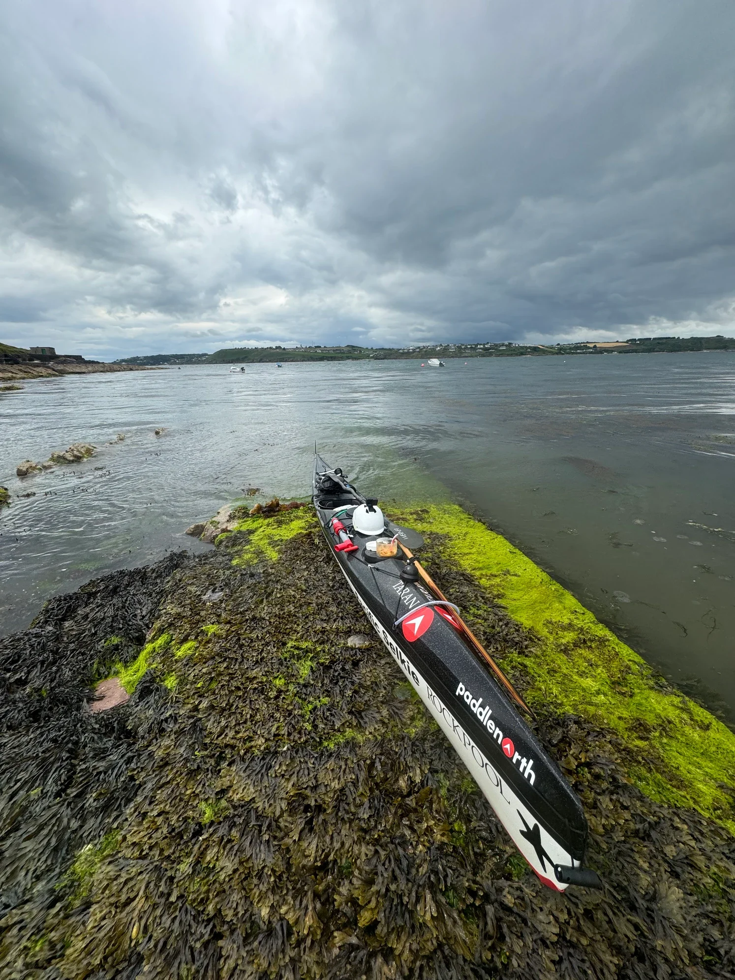 July 6th, Day 22. More headwind today, paddled for 6 hours into a force 4, but most of the time gusting a 5. Just annoying and it makes it easy to think about the things that piss me off about this trip. Testing to the mind, and spirit. First enjoying a really lovely slow and sunny morning as everyone was on a Saturday morning. Really enjoyed my coffee and making my sandwich and all that in my tent with both flaps open to get some cool air. Got lots of sleep too. Got to Oysterhaven and stored my boat there for the night and am staying with Padraig and his wife.