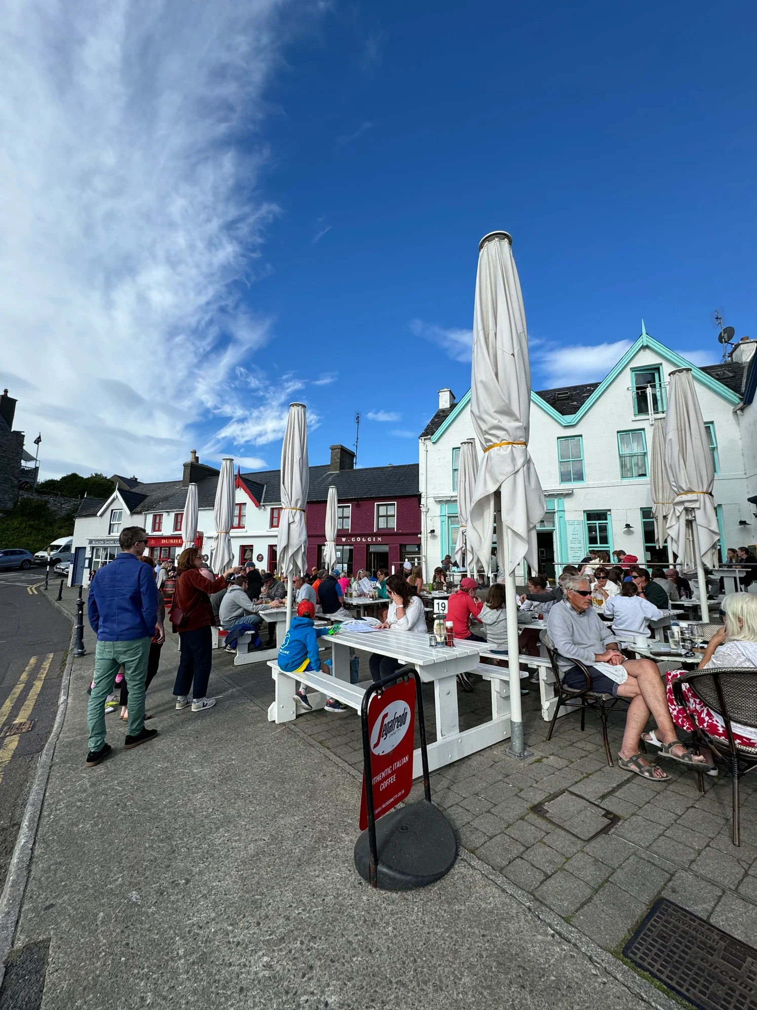 July 11, Day 27. Bit of a weird day. Beautiful morning camped next to the old fishing boats and had several dogs come by to say hello with not a trace of anyone around. Got on the water and about an hour in needed a pee stop and it took quite a while to find one. No where to land. Eventually made it to Baltimore with more offshore winds. Not sure which I like better, being blown into the cliffs usually with swell, or being blown towards the sea and short chop. Baltimore was beautiful and I got a really lovely pan fried hake with garlic butter and chips. Today was the first time that I really felt the lack on company while walking around and sitting at a cafe alone. Doesn’t bother me still, just nice to have the company. Then throughout my meal I started to feel the weight and the nerves of the Mizen crossing.