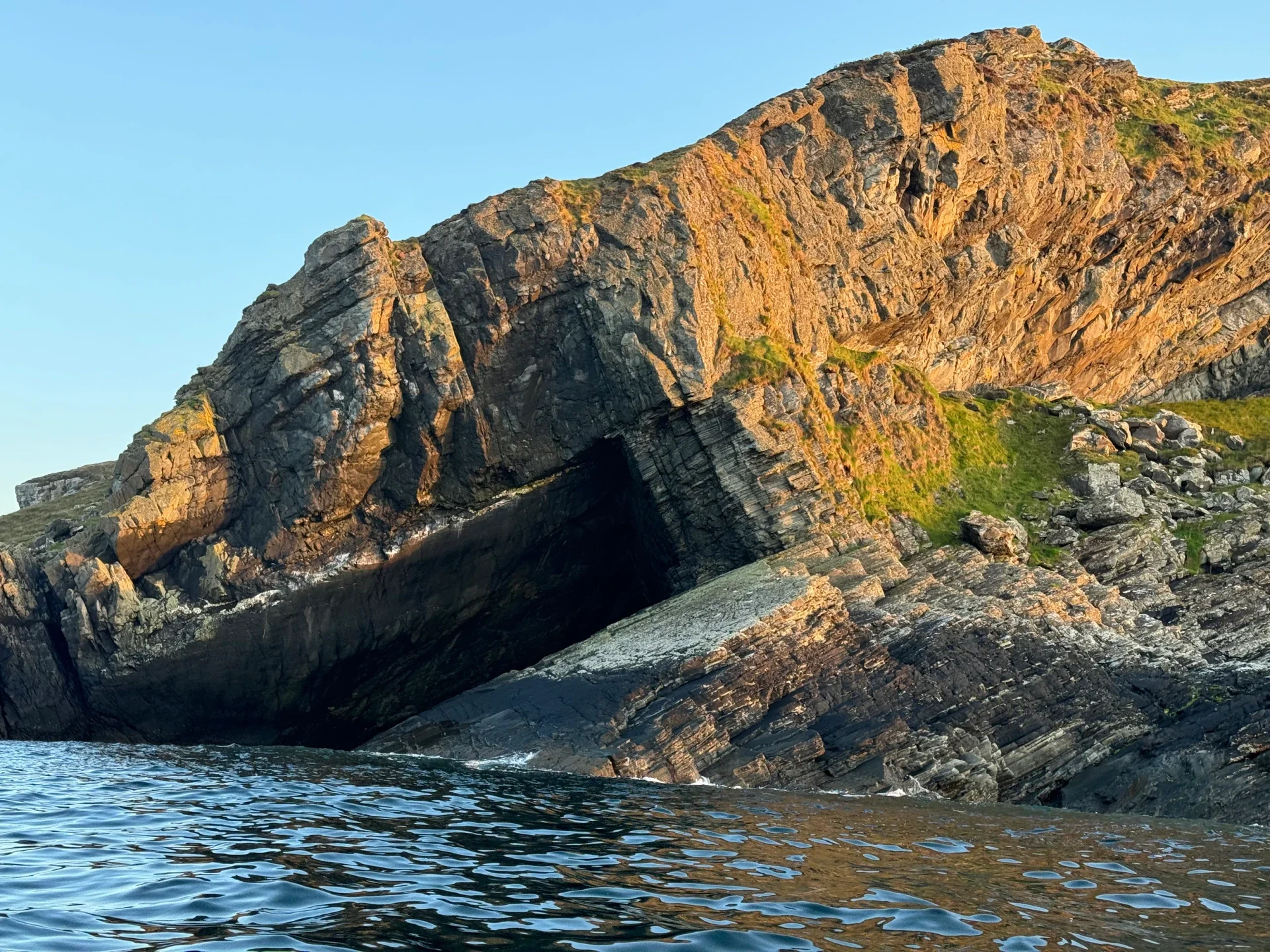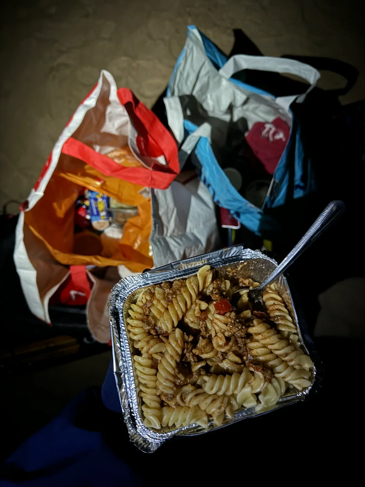 As I approached the beach before rounding the corner, I was paddling in and slowly saw someone bee line in towards where I was going to land. When I got close he shouted out “Ariel??” And I called back “..yeah?” And it turns out he has been following my whole trip on Facebook and had paddled around in the ‘80s. I was so exhausted and didn’t want to chat so we had a brief conversation and I went to eat my lunch and take a break. What are the odds he was on the beach the exact time I came. I took a Power Nap leaned against a rock, I must have looked like a lunatic to people on the beach, watching me sing and talk to myself and nap sitting upright. Head back off after having a meal replacement shake as well and although I am enjoying them and get get them down, they aren’t the kindest on my stomach and I just end up filling my dry suit with methane. When I had paddled until the sun had set, I found a spot on a beautiful long sandy beach and immediately on arrival there were two women there on their walk to greet me. I was tired and didn’t want to chat much and just set up my stuff but they insisted on bringing me dinner if I wanted anything and I was glad to say yes please. And I’m sure glad they did because when they came back they brought a parade of shopping bags full with food and one of the woman’s three daughters. It was so sweet, they had packed me pasta in to go containers, a hot flask with tea bags and a jug of milk, all kinds of food, brown bread and butter, a soapy towel to wipe my face with and a postcard with kind words on it. It was so precious. I ate my pasta while I had a good phone call with my mom, she loves seeing all the Irish names of people commenting on my posts about my trip. She feels like it’s a great community from all the way across the world and I agree it is.